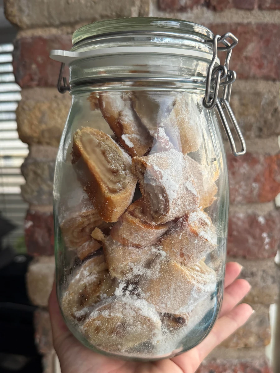 10.נפזר אבקת סוכר מעל הכל ונחכה שהעוגיות יתקרר ויתקשו מעט.