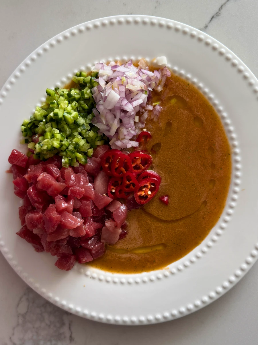 Elita Ofek 0 comments נובמבר 4, 2025 26 אוק 2025 סשימי טונה אדומה על לאליק, מנגו ושקדים מתובלים ברוטב פונזו. אסייתי, דגים נאים, מנות ראשונות, מתכונים המשך/י לקרוא