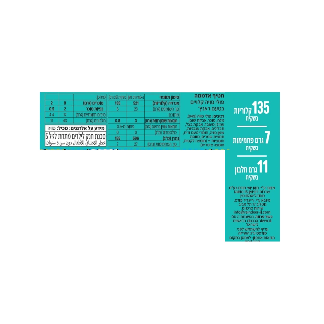 135 קלוריות בשקית | 7 גרם פחמימות בשקית | 11 גרם חלבון בשקית