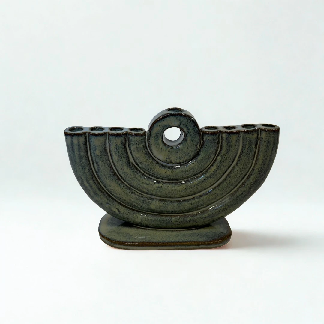 חנוכייה מקרמיקה בעבודת יד, בצורת מנורה, בעיצוב מודרני מינימליסטי של ״Terra Ceramic Tableware״.
