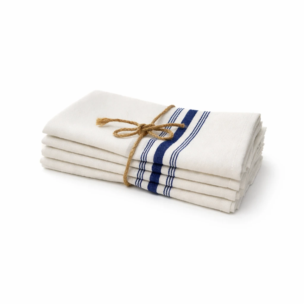 סט 4 מפיות לבנות עם עיטורי פסים כחולים