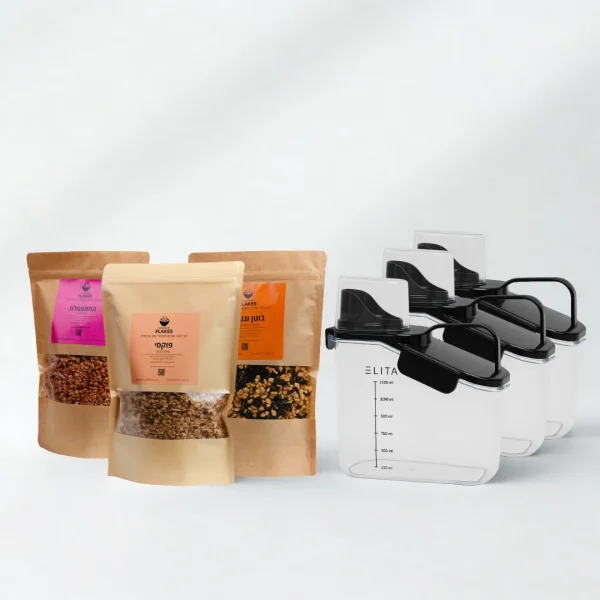 מיכל המתאים למילוי של מגוון מוצרים! קטניות, דגנים, פסטות, קמחים, חומרי ניקוי, כל זאת בזכות הסגירה ההרמטית של המיכל.