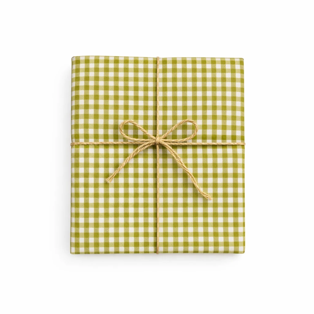 מפת שולחן משובצת בגווני ירוק ולבן שילוב של קלאסיקה וניקיון עיצובי שמתאים לכל סגנון אירוח.