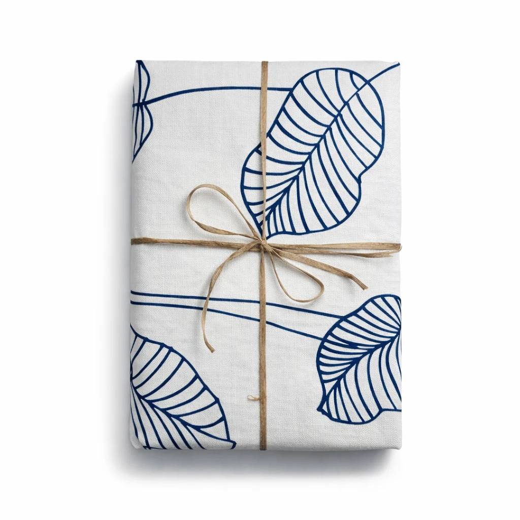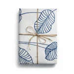 מפה בצבע לבן בעיטור עלים כחולים.