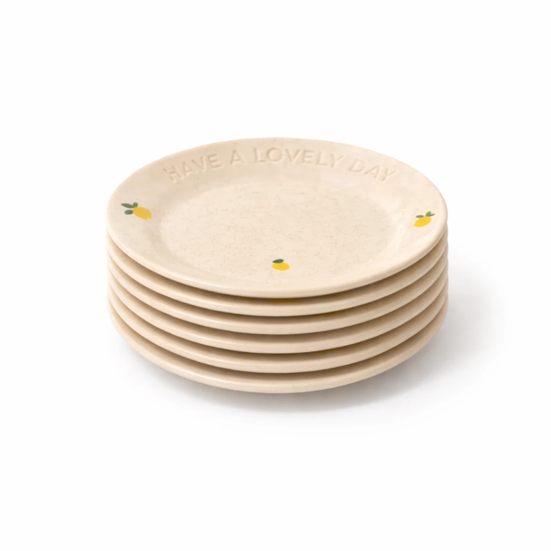 סט 6 צלחות מנה ראשונה עשויות קרמיקה במראה עבודת יד, בגוון חול טבעי עם עיטורי לימונים. חלק מסדרת כלי ההגשה HAVE A LOVELY DAY. מושלמת להגשה, במיוחד בימי הקיץ לאווירה איטלקית.