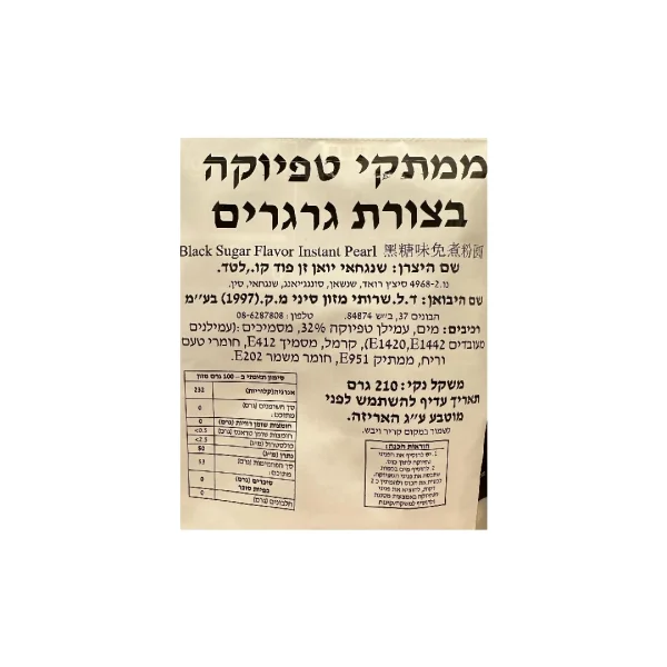 פניני עמילן טפיוקה להכנה מהירה בטעם סוכר שחור.
