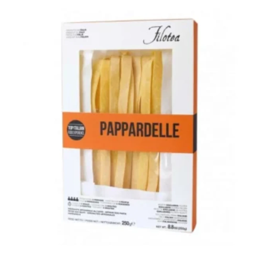 פסטת ביצים באיכות גבוהה מאוד. הפסטה מקבלת את טעמה האותנטי הטיפוסי של פסטה טריה תוצרת בית בזכות שימוש בקמח דורום איכותי וביצי משק טריות. הפסטה מתאימה לרטבים קלילים של שמן זית, ריקוטה, עגבניות טריות, ארטישוק.