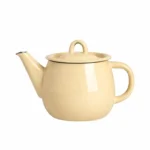 קנקן תה אמייל בצבע חמאה, מושלם להגשת תה ומשקאות חמים אחרים.