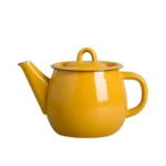 קנקן תה אמייל בצבע חרדל, מושלם להגשת תה ומשקאות חמים אחרים.