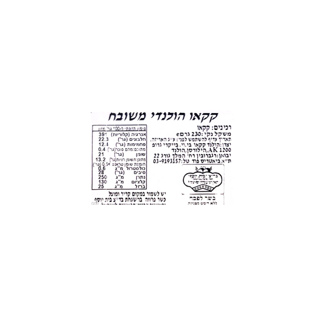 קקאו הולנדי משובח של המותג BLOOKER, בעל טעם ייחודי המורכב מפולי קקאו שנבחרו בקפידה.