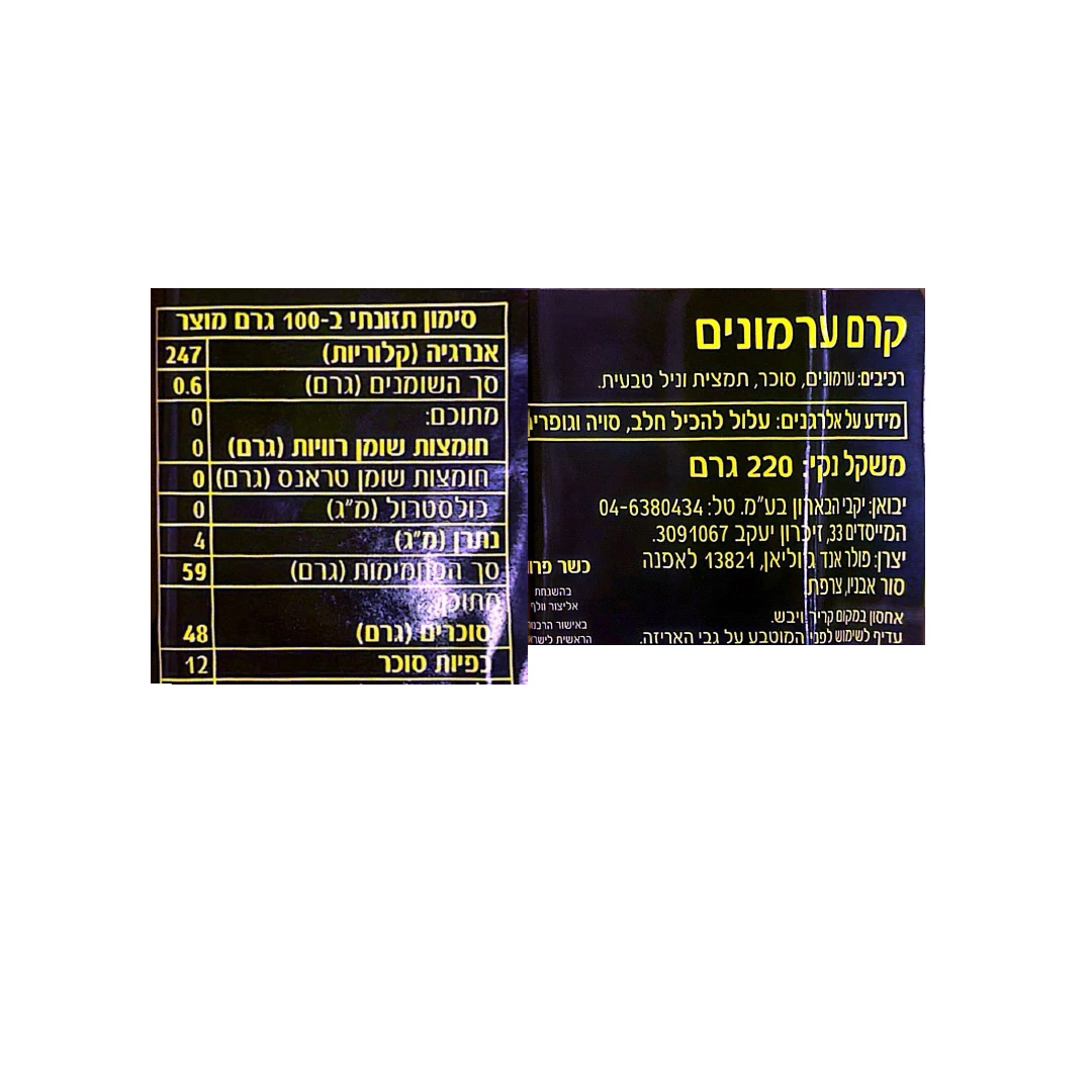 אלרגנים: עלול להכיל חלב, סויה וגופרית.