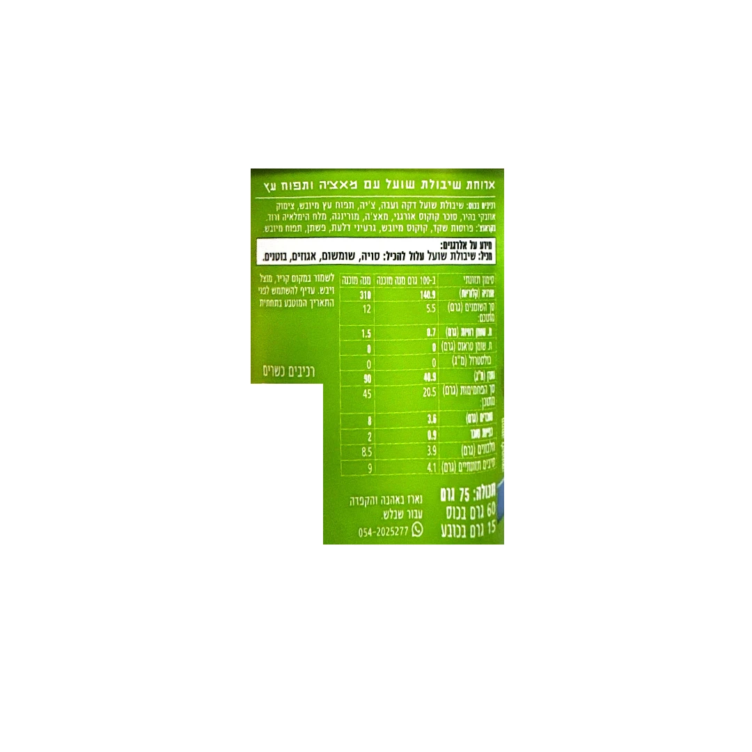 מידע על אלרגנים: מכיל: שיבולת שועל. עלול להכיל: סויה, שומשום, אגוזים, בוטנים.