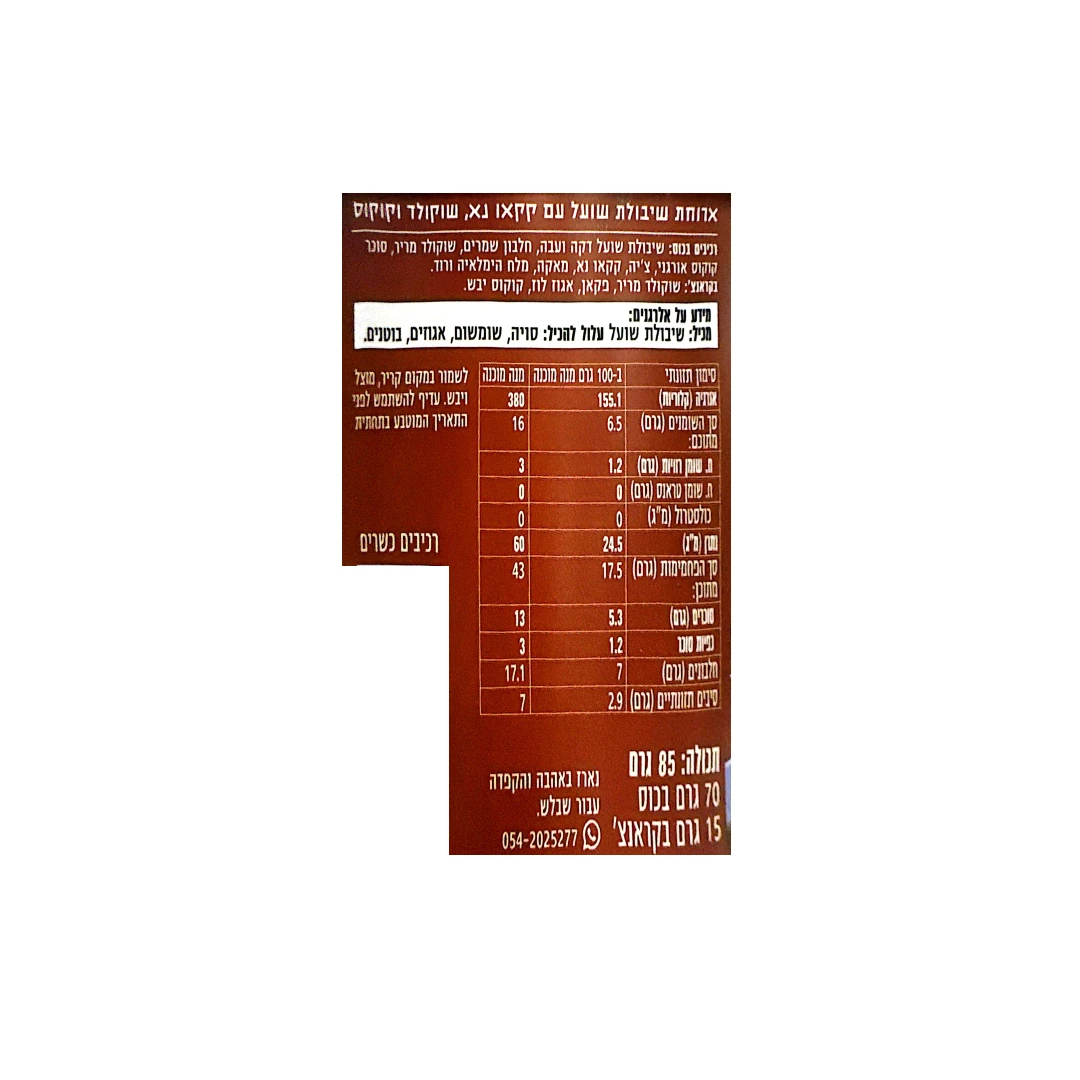 מידע על אלרגנים: מכיל: שיבולת שועל. עלול להכיל: סויה, שומשום, אגוזים, בוטנים.
