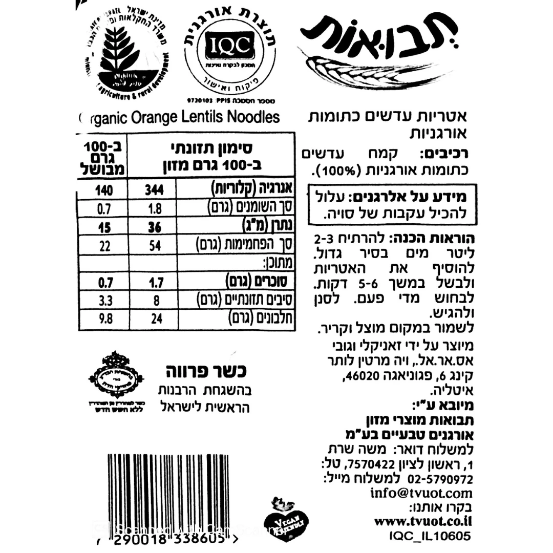 רכיבים: קמח עדשים כתומות אורגניות (100%).