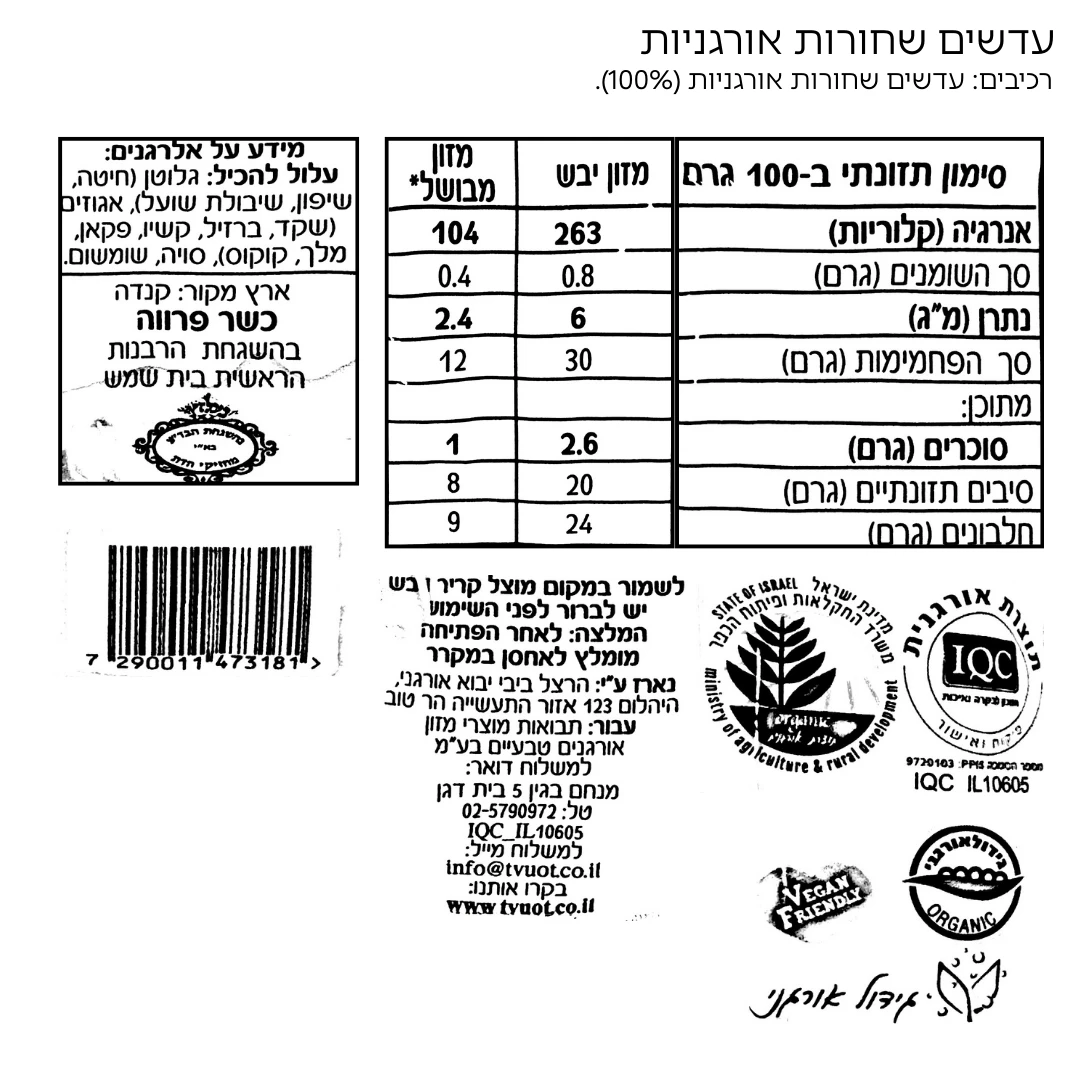 רכיבים: 100% עדשים שחורות אורגניות.