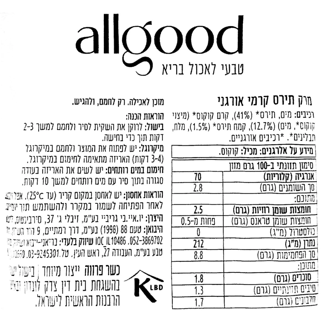 "allgood" הוא מותג המיובא ומשווק על ידי "בריאני", המתמחה במוצרי מזון אורגניים, טבעוניים, ללא גלוטן וללא חומרים משמרים. בריאני נוסדה בשנת 2005 ובולטת בתחום הפצת מוצרי מזון בריאים, מבוססי צומח וידידותיים לסביבה.