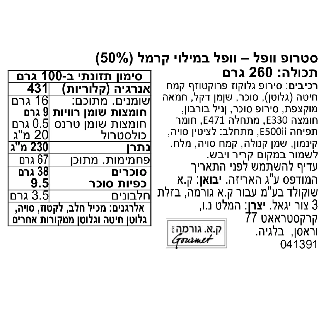 סטרופ וופל הוא חטיף הולנדי מסורתי שמורכב משני וופלים דקים ופריכים, שביניהם שכבת קרמל. הוופלים נאפים עד לקבלת מרקם זהוב ועדין, והמלית מעניקה נימוחות מושלמת. מומלץ ליד משקה חם.