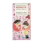 שוקולד מריר עם חתיכות פטל טהור וחמצמץ עם 60% מוצקי קקאו, אורגני ועשיר ללא גלוטן וטבעוני.