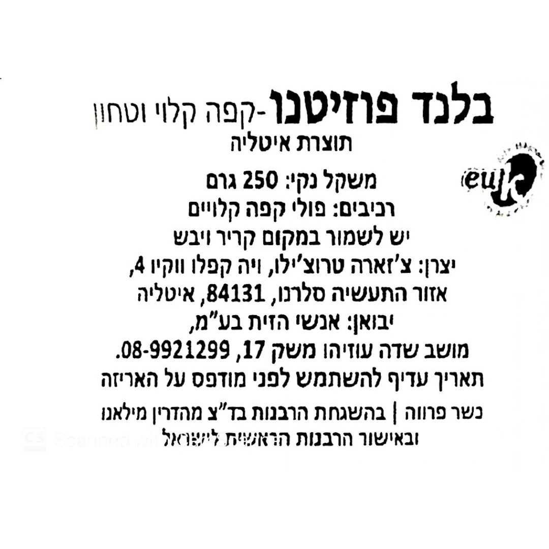 פולי קפה טחונים של מותג Caffe Trucillo עשויים מ-80% ערביקה ו-20% רובוסטה. פולי הערביקה הריחניים והאלגנטיים משתלבים בצורה מושלמת יחד עם הטעם הדומיננטי והקטיפתי של פולי הרובוסטה שמזוהים עם תווי טעם של שוקולד עשיר. "תערובת פוזיטנו" היא בלנד מושלם לבוקר! קפה בעל טעם עשיר, תוסס ומלא חיים, ומאוזן להפליא בין המתיקות הטבעית של הערביקה לבין העוצמה של הרובוסטה. זהו קפה עם נוכחות, כזה שמעיר את החושים ומעניק אנרגיה ליום שלם.