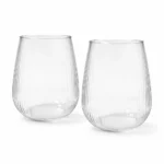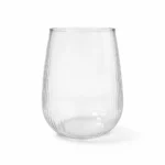 זוג כוסות נמוכות מזכוכית בטקסטורת פסים עם מבנה עגול, לכוס שתיה מפנקת ונוחה לאחיזה. מתאים לשתייה חמה וקרה.