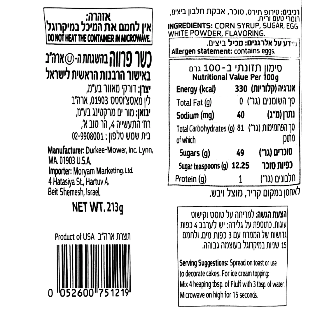 Durkee-Mower היא חברה אמריקאית משפחתית שנוסדה בתחילת המאה ה־20 ונחשבת לחלוצה בתחום ממרחי המרשמלו. המותג התפרסם בזכות Marshmallow Fluff ממרח המרשמלו האייקוני שהפך לחלק בלתי-נפרד מהמטבח האמריקאי. החברה מייצרת עד היום את הממרח לפי מתכון מקורי ופשוט, ללא חומרים נוספים/חדשים, תוך שמירה על המרקם האוורירי והטעם הנוסטלגי שמאפיין את ה־Fluff כבר יותר מ־100 שנים.
