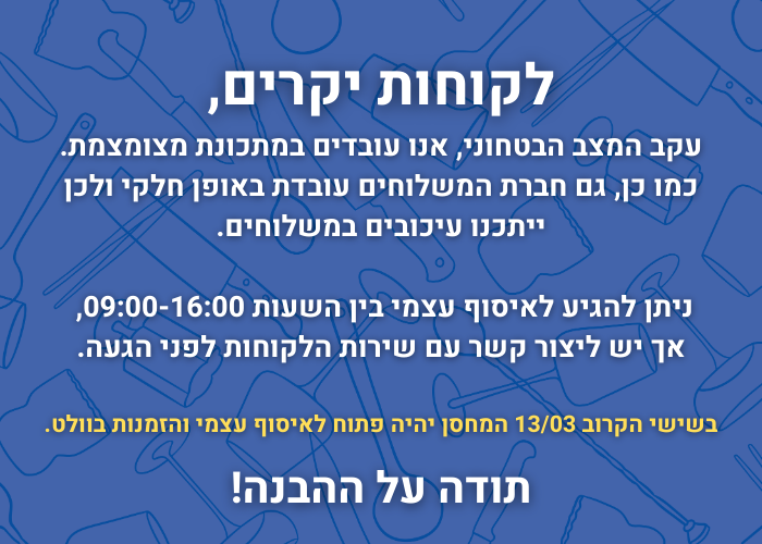 יש לאסוף את המשלוח עד 7 ימי עסקים!