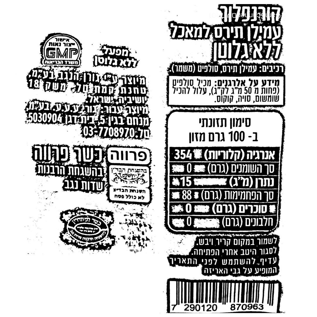 קורנפלור איכותי המבוסס על עמילן תירס טהור, ללא גלוטן. אידיאלי להסמכה של רטבים, מרקים, קינוחים ומאפים, מעניק מרקם חלק ואחיד ללא שינוי בטעם. מתאים לאפייה ולבישול יומיומי ולתזונה ללא גלוטן (מיוצר במפעל ללא גלוטן).