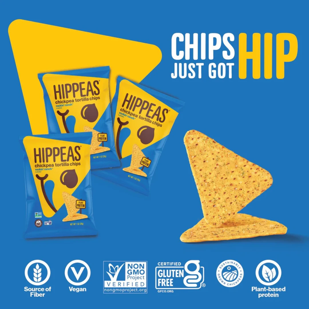 Hippeas חטיף טורטיה אפוי על בסיס חומוס בטעם ראנץ’ עם תיבול קרמי-עדין עם נגיעות שום, בצל ועשבים. מתאים כנשנוש יומיומי, לאירוח או לצד מטבלים.