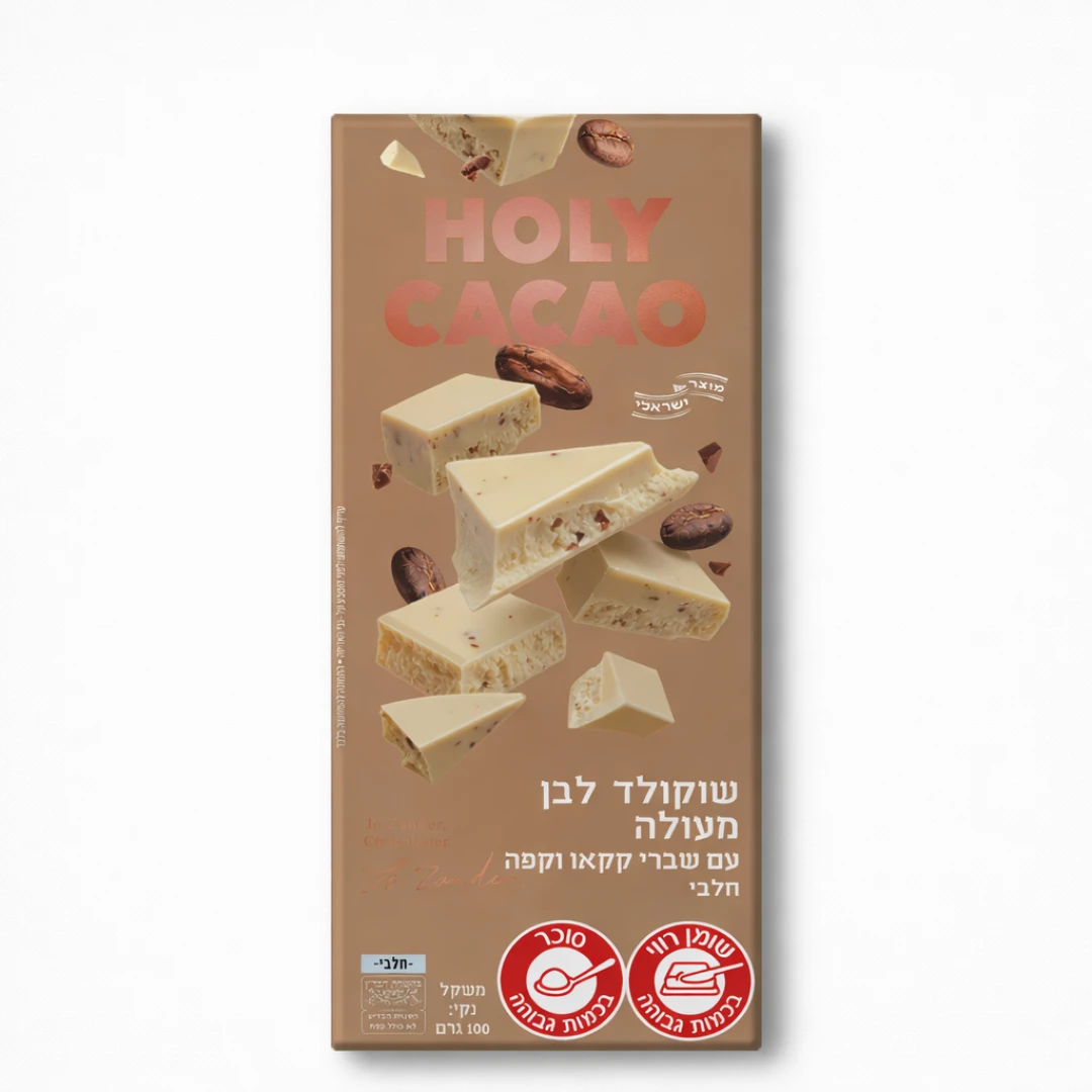 שוקולד לבן מעולה עם שברי קקאו וקפה, שוקולד למביני עניין.