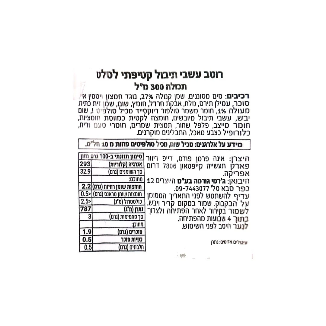 אלרגנים: מכיל שום, מכיל סולפיטים פחות מ10 חל״מ