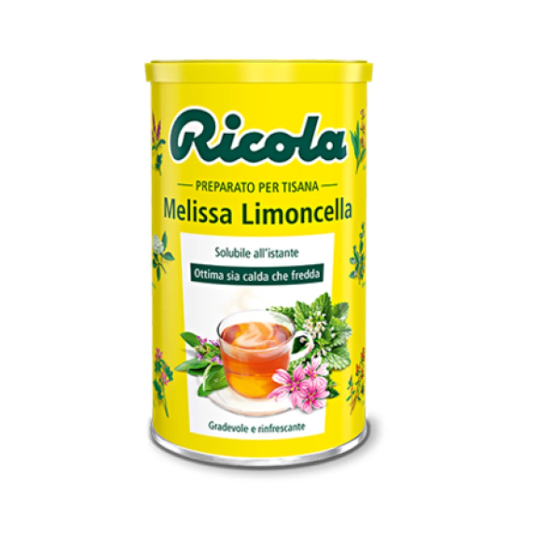 חליטה ממותקת מבית Ricola, משקה צמחים ממותק נמס להכנה מיידית של חליטה חמה או קרה עם טעם עדין של מליסה.