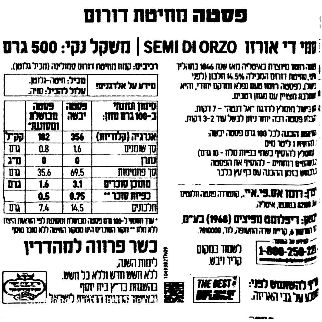 תכולה: 500 גרם | מחיר ל-100 גרם: 2.18₪