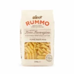 פנה ריגטה (Penne Rigate) של RUMMO היא פסטה איטלקית בצורת קשים גדולים ועבים עם קצוות אלכסוניים שאידאלית לרטבים. מיוצרת מחיטת דורום איכותית ובייבוש איטי לשמירה על מרקם מושלם ועמידות בבישול.