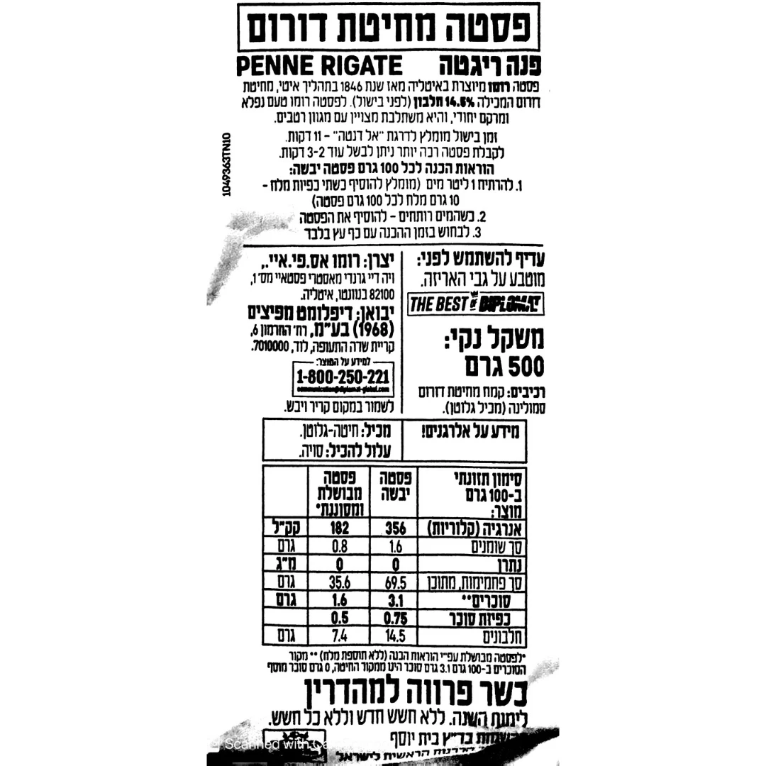מידע על אלרגנים: מכיל: חיטה – גלוטן. עלול להכיל: סויה.