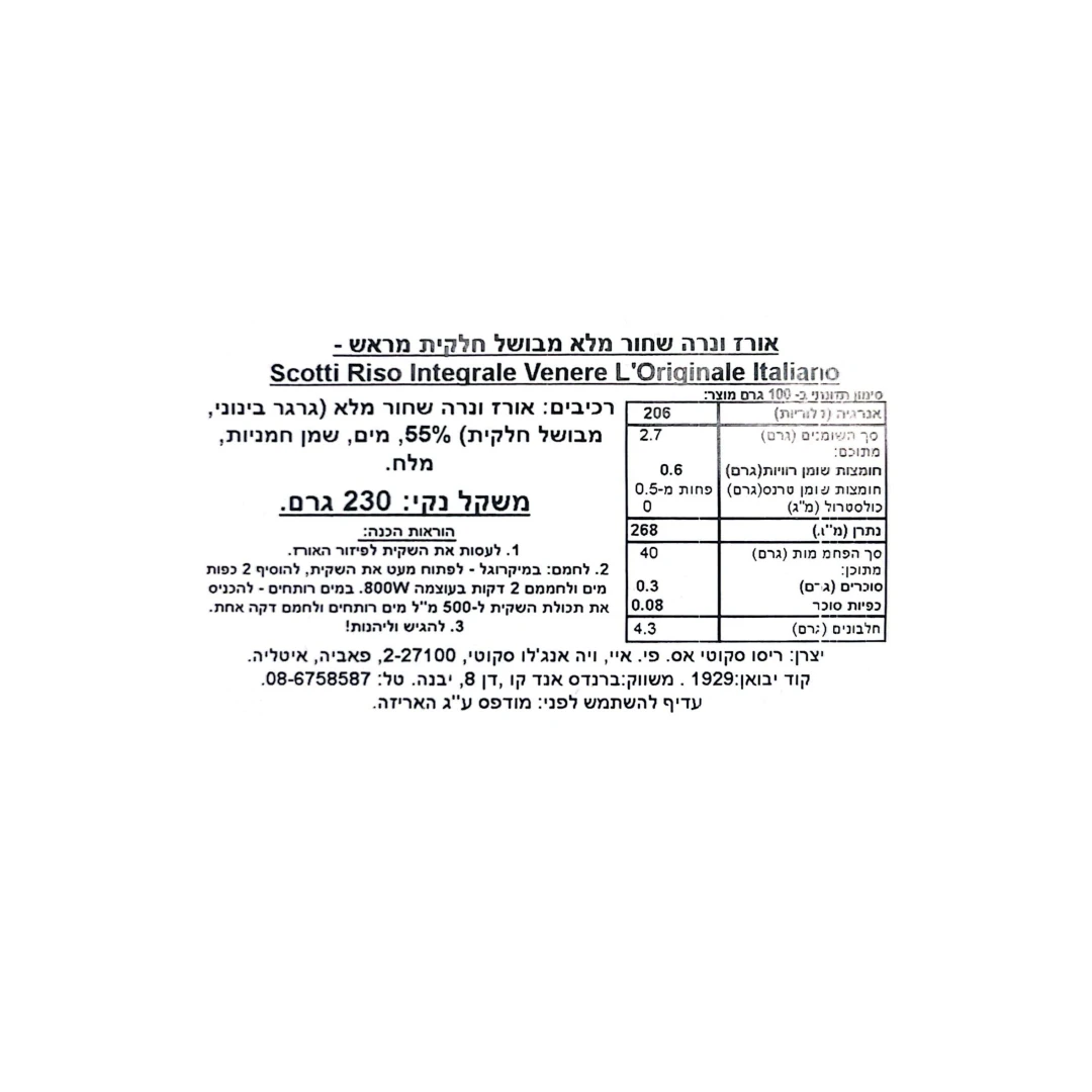 אורז שחור איטלקי מלא בצבע שחור סגלגל עמוק עם ארומה אגוזית עדינה . מבושל חלקית, רק להכניס למיקרוגל ל- 2 דקות ומוכן.