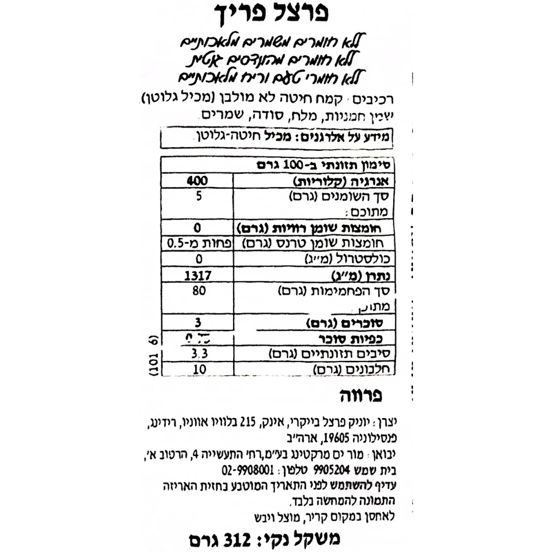 מידע על אלרגנים: מכיל חיטה-גלוטן.