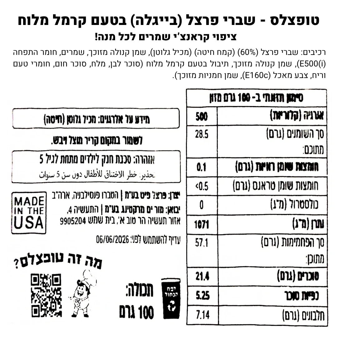 שברי פרצל קראנצ'יים שמרימים לכל מנה! Topzels הוא טוויסט מפתיע לפרצל שאתם אוהבים – טופינג קראנצ'י וטעים בטעמים ממכרים שיהפוך כל ביס לחוויה.