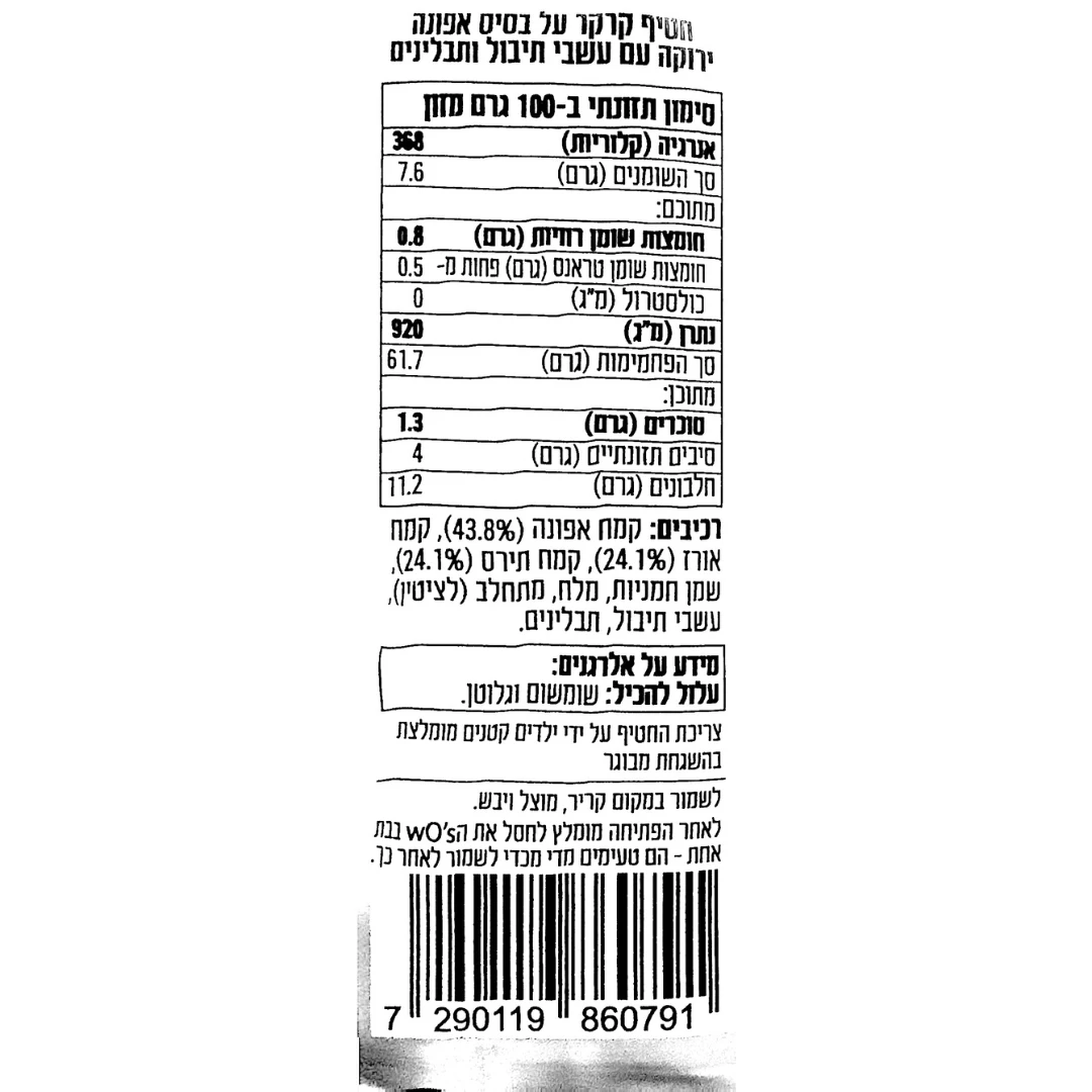 עמוד הבית כל המוצרים WO's חטיף קרקר אפונה ירוקה ועשבי תיבול