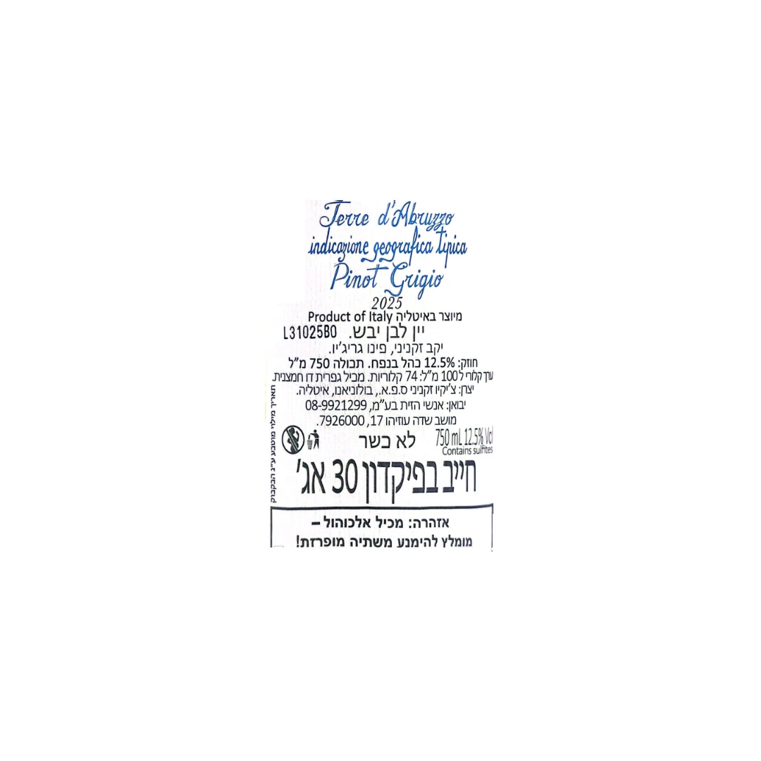 יין לבן יבש, קליל ונקי עם טעמי אגס מענבי פינו גריג'יו, תפוח ירוק וחמיצות קלה.
